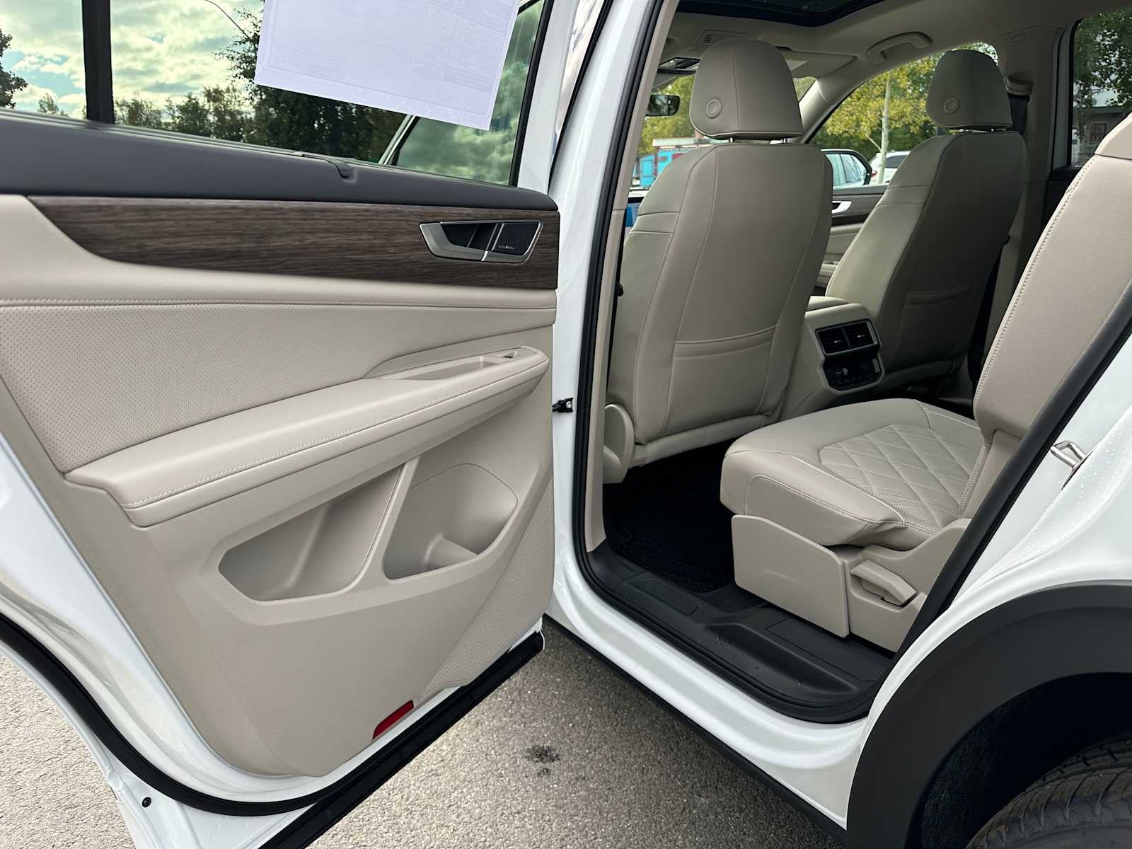 Navigation, Moonroof, Third Row Seat, Heated Leather Seats, All Wheel Drive, Turbo Charged, Aluminum Wheels, Trailer Hitch, Panoramic Roof. Opal White Pearl exterior and Shetland Beige interior, 2.0T SEL Premium R-Line trim.